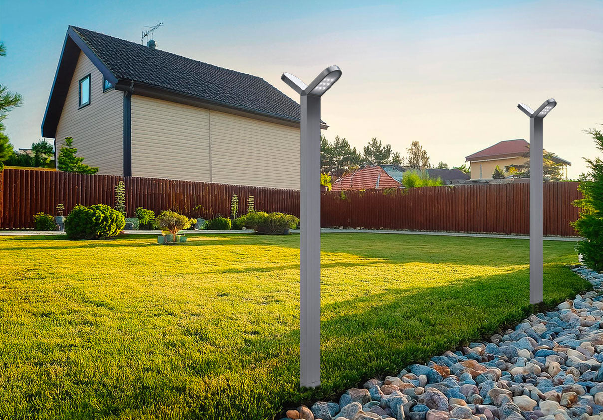 Come mostrato nell'immagine, il design verticale culmina in una elegante biforcazione che ospita i due moduli luminosi, creando un elemento architettonico che è allo stesso tempo funzionale e artistico.